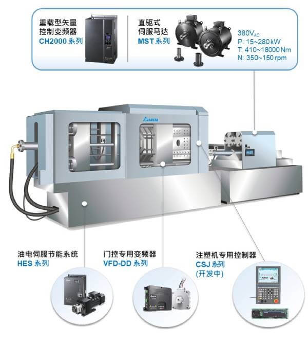 臺達直驅式永磁同步伺服馬達是專為低轉速、高轉矩應用所設計。可同步作業、加減速響應快,能夠縮短產品制作時間,提升產能。直驅控制,精準掌握熔膠量,并以穩定的轉速提升加纖復合產品的良率和質量。除了具備高效率、高精度、等特性,出軸亦彈性多樣,能搭配多種軸套以滿足不同需求與應用。