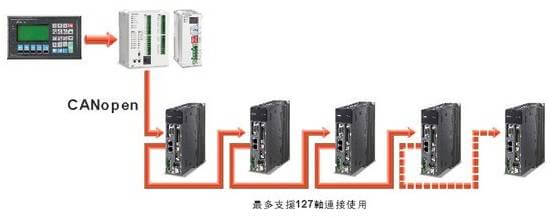 符合 CANopen 標準協議DS402三種運動模式(Interpolation Position Mode、Profile Position Mode、Homing Mode)