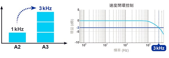 ASDA-A3 速度響應頻率 3.1kHz,馬達搭載24-bit 高解析絕對式編碼器,內建進階自動增益調適與系統分析接口、加入全新擺振抑制與系統建模功能、并具備回生能源的再利用能力,提供高響應、精準定位、細致平穩、靈活精巧的特性,以新一代的伺服技術,提高設備效能,提升精密機械的精度以及整體性能。